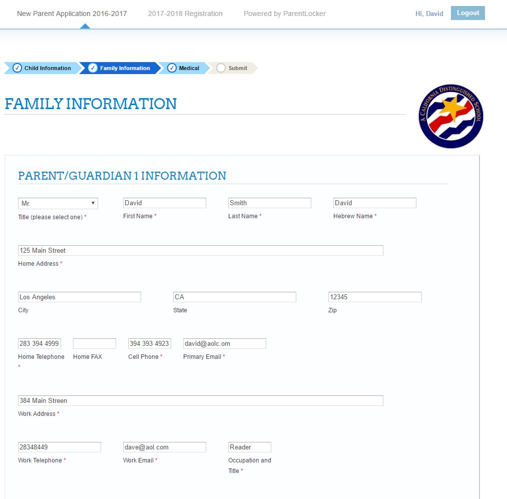 • Once submitted, the data inputted by the parent on the form automatically imports into their account in your ParentLocker database, so that your office staff doesn't need to type-in any data manually.