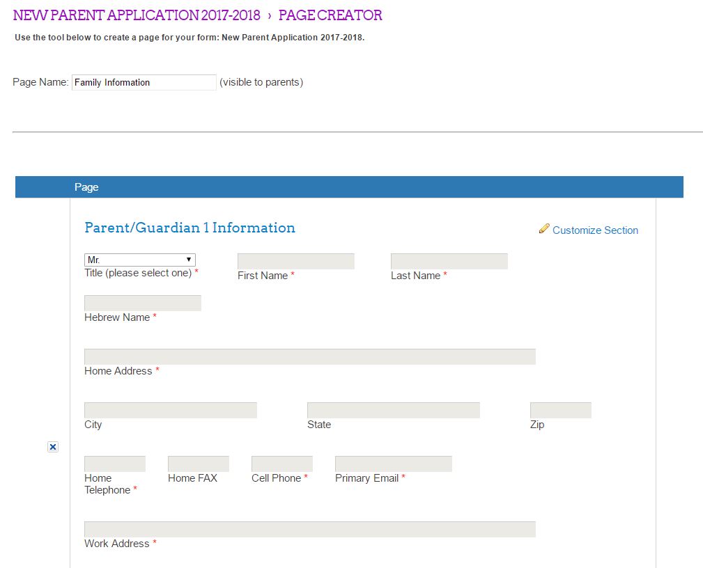 • If there are multiple related forms, for example, multiple forms to be submitted when applying to the school, create an Admissions Landing Page where prospective parents can find all relevant forms to fill out.