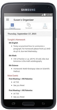 • Parents and students see all of the content relevant to each student in their personal Organizer.