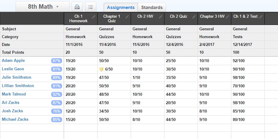 - The gradebook is powerful and flexible: teachers have lots of control with how grades are displayed and averaged.